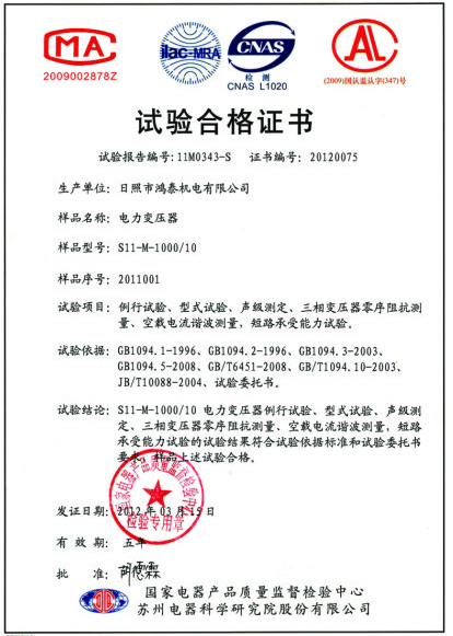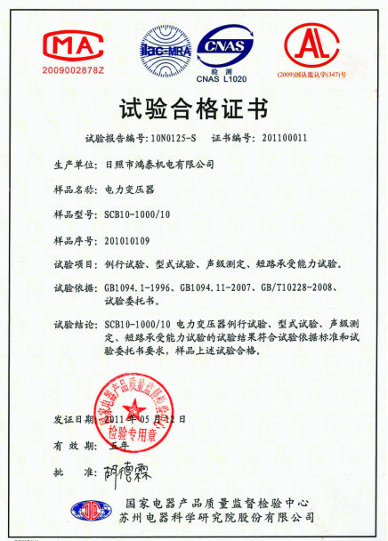 干變試驗(yàn)合格證書