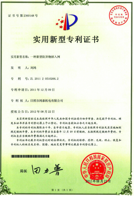 實(shí)用新型專利證書